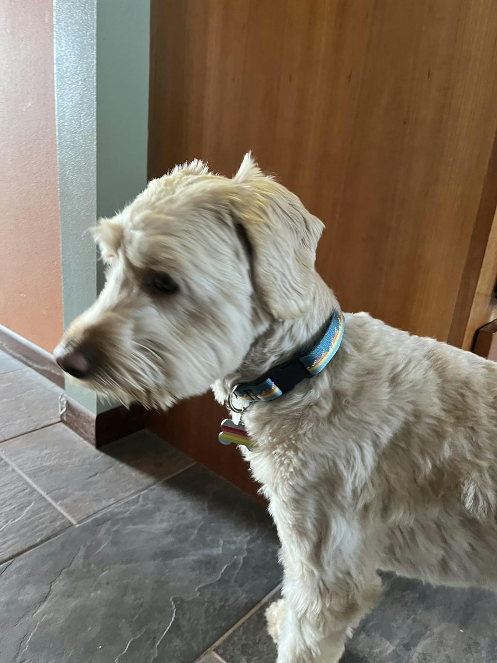 Love the look, love the fit! Pepper has sensitive fur that rubs off with certain collars. This one is secure, comfy and super cute!