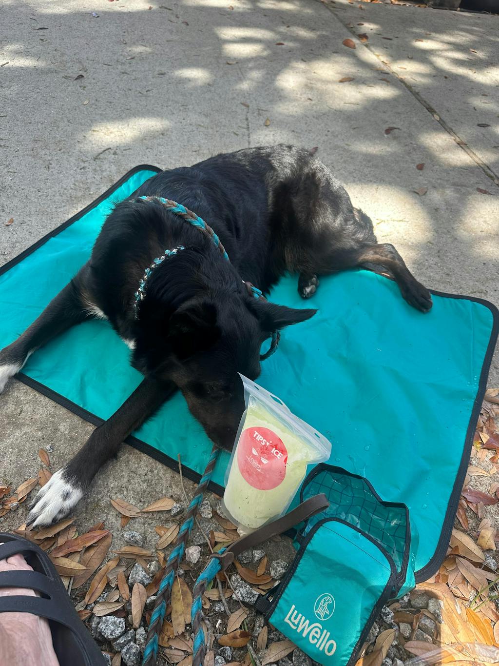 First time using at and food truck festival and brewery my dog laid on her mat and relaxed!